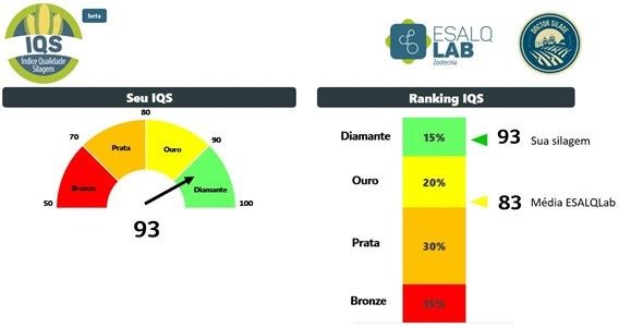 De acordo com o IQS, a silagem é classificada em bronze, prata, ouro e diamante e, ao mesmo tempo, será apresentado o ranking da silagem em relação a todas as amostras analisadas na ESALQLab.